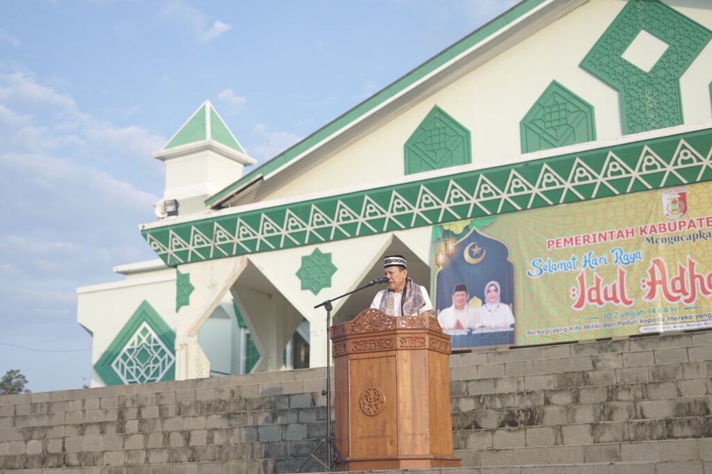 Sebelum Ibadah Sholat Idul Adha dimulai Bapak Penjabat Bupati Tulang Bawang mengucapkan selamat hari raya Idul Adha 1444 H /Tahun 2023 beliau mengajak kepada seluruh masyarakat Kabupaten Tulang Bawang untuk terus meningkatkan Keimanan dan Ketaqwaan Kepada Allah SWT dan menjalankan hal baik yang menjadi Kewajiban maupun Sunnah bagi Kaum Muslimin dan Muslimat yang ada di Kabupaten Udang Manis ini.
